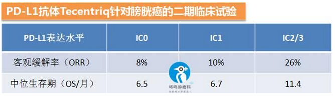 在已經(jīng)批準(zhǔn)的膀胱癌中,也顯示出來PD-L1表達(dá)量越高,有效率越高的趨勢: