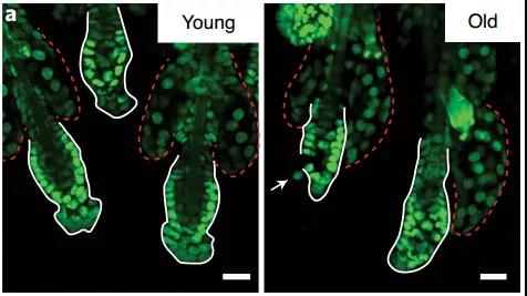 在毛發(fā)這件事上也是一樣。為什么衰老的人/動物會毛發(fā)變白變稀疏呢?大概也許應該,想來就是毛囊干細胞衰竭了吧。