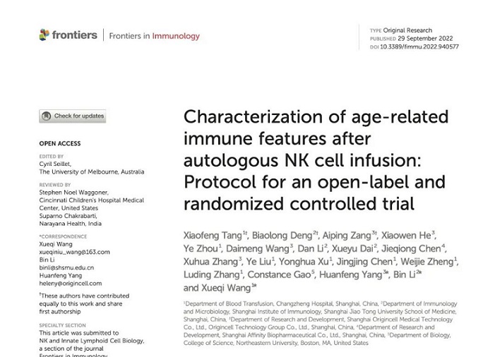 長(zhǎng)征醫(yī)院、上海免疫學(xué)研究所、原能細(xì)胞三家機(jī)構(gòu)近期在《Frontiers in Immunology》雜志上共同發(fā)布了關(guān)于自體NK細(xì)胞輸注對(duì)年齡相關(guān)免疫特征表征影響的研究數(shù)據(jù),進(jìn)一步佐證了通過自體NK細(xì)胞延緩衰老這一方法的可行性和有效性。