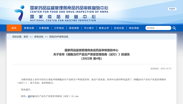 細(xì)胞治療產(chǎn)品生產(chǎn)質(zhì)量管理指南
