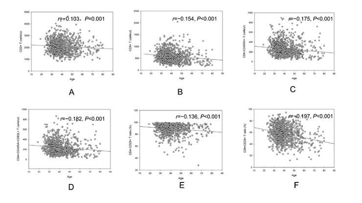 此前,北京協(xié)和醫(yī)院感染內(nèi)科主任李太生等在《Aging》雜志發(fā)表文章,分析了1068名健康人外周血淋巴細(xì)胞及其亞群隨著年齡變化因素?cái)?shù)量和比例發(fā)生的改變。